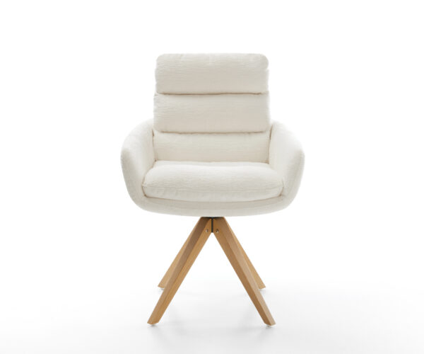 Jedálenská stolička Abelia-Flex s opierkami bouclé mäkký béžová drevená podstava hranatá prírodná 180° otočný