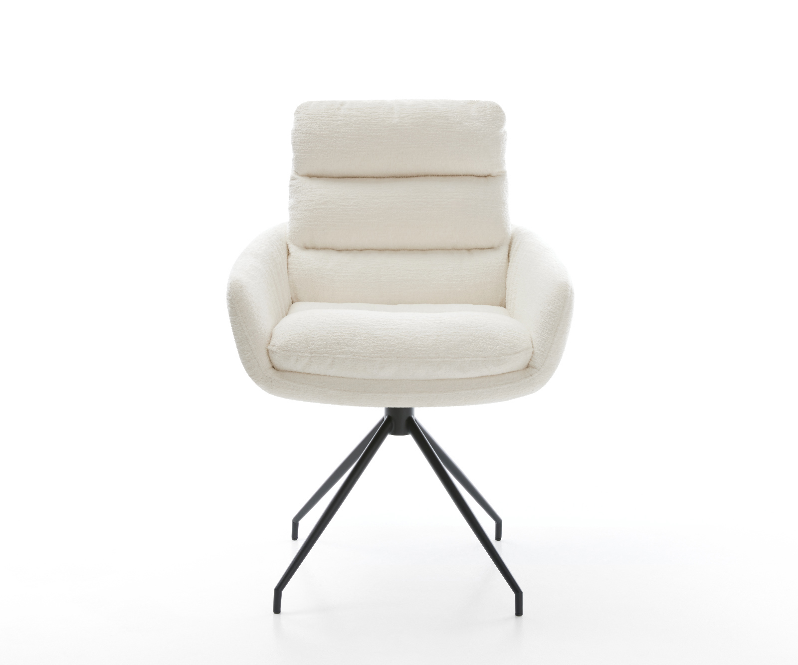 Jedálenská stolička Abelia-Flex s opierkami bouclé mäkký béžová krížová podstava zúžená čierna
