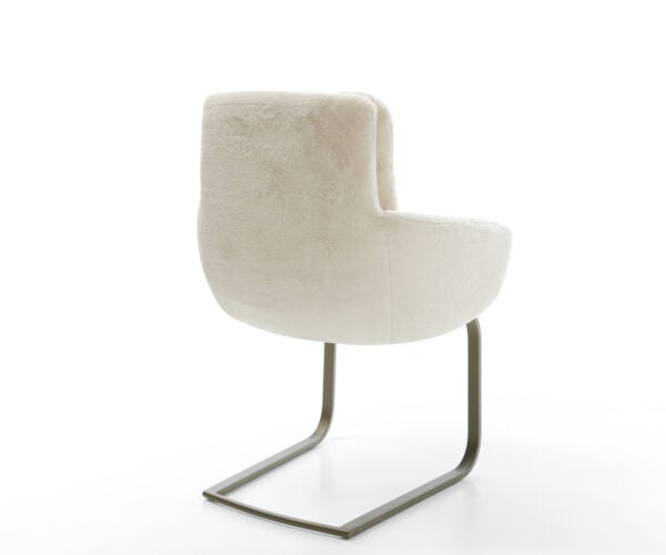 Luxusný plyšový poťah v jemnej krémovo-bielej farbe dodáva stoličke obzvlášť elegantnú charizmu. Mäkký povrch poskytuje najvyšší komfort sedenia – ideálne pre moderné jedálne a obývacie priestory s kvalitným zariadením.