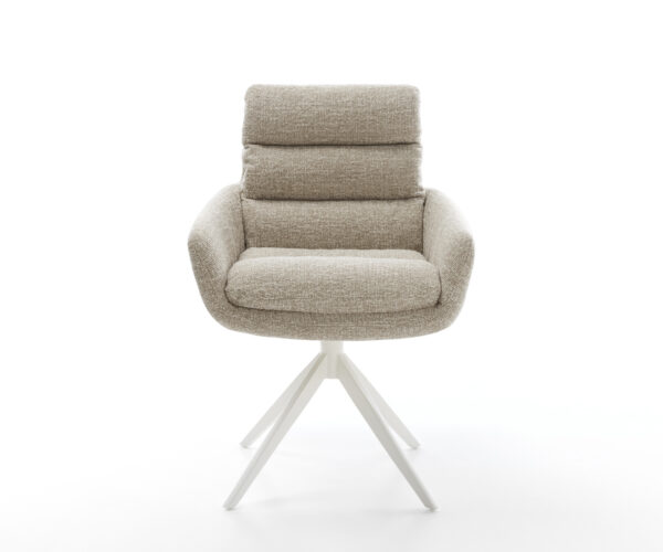 Jedálenská stolička Abelia-Flex s opierkami tkanina mäkká béžová krížová podstava široká biela 360° otočný kolísacia funkcia