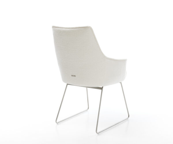 Jedálenská stolička Alja s opierkami vytvára svojím vynikajúcim dizajnom dokonalú harmóniu medzi tvarom a komfortom. Elegantné línie pôsobia nadčasovo a štýlovo. Prepracovaný záhyb v oblasti operadla pritiahne všetky pohľady na mäkko tvarované, vertikálne skladanie na vnútornej strane, ktoré krásne kontrastuje s okrúhlou a tvarovo pevnú vonkajšou stranou. Štíhle opierky na ruky pozývajú na sedenie. Výborné čalúnenie s integrovaným, obzvlášť kvalitným vreckovým pružinovým jadrom zabezpečuje, že už nikdy nebudete chcieť sedieť na inej jedálenskej stoličke ako na Alja s opierkami. Pretože Alja s opierkami je dizajn, kvalita a komfort v dychberúcom prevedení.
