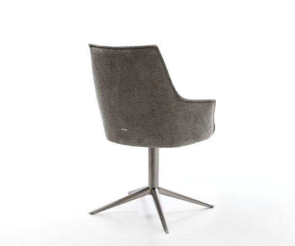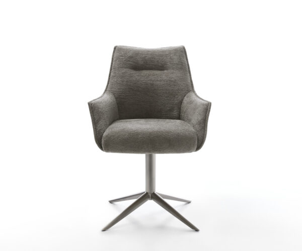 Jedálenská stolička Alja s opierkami vytvára vďaka svojmu vynikajúcemu dizajnu dokonalú harmóniu medzi tvarom a komfortom. Elegantné línie pôsobia nadčasovo a štýlovo. Prepracovaný záhyb na zadnej strane upúta pozornosť na jemné, vertikálne skladanie na vnútornej strane, ktoré krásne kontrastuje s okrúhlou a tvarovo stabilnou vonkajšou stranou. Štíhle opierky lákajú na sedenie. Vynikajúce čalúnenie s integrovaným, mimoriadne kvalitným vreckovým pružinovým jadrom zabezpečuje, že už nikdy nebudete chcieť sedieť na inej čalúnenej jedálenskej stoličke ako na Alja s opierkami. Preto je Alja s opierkami dizajnom, kvalitou a komfortom v dychberúcom prevedení.