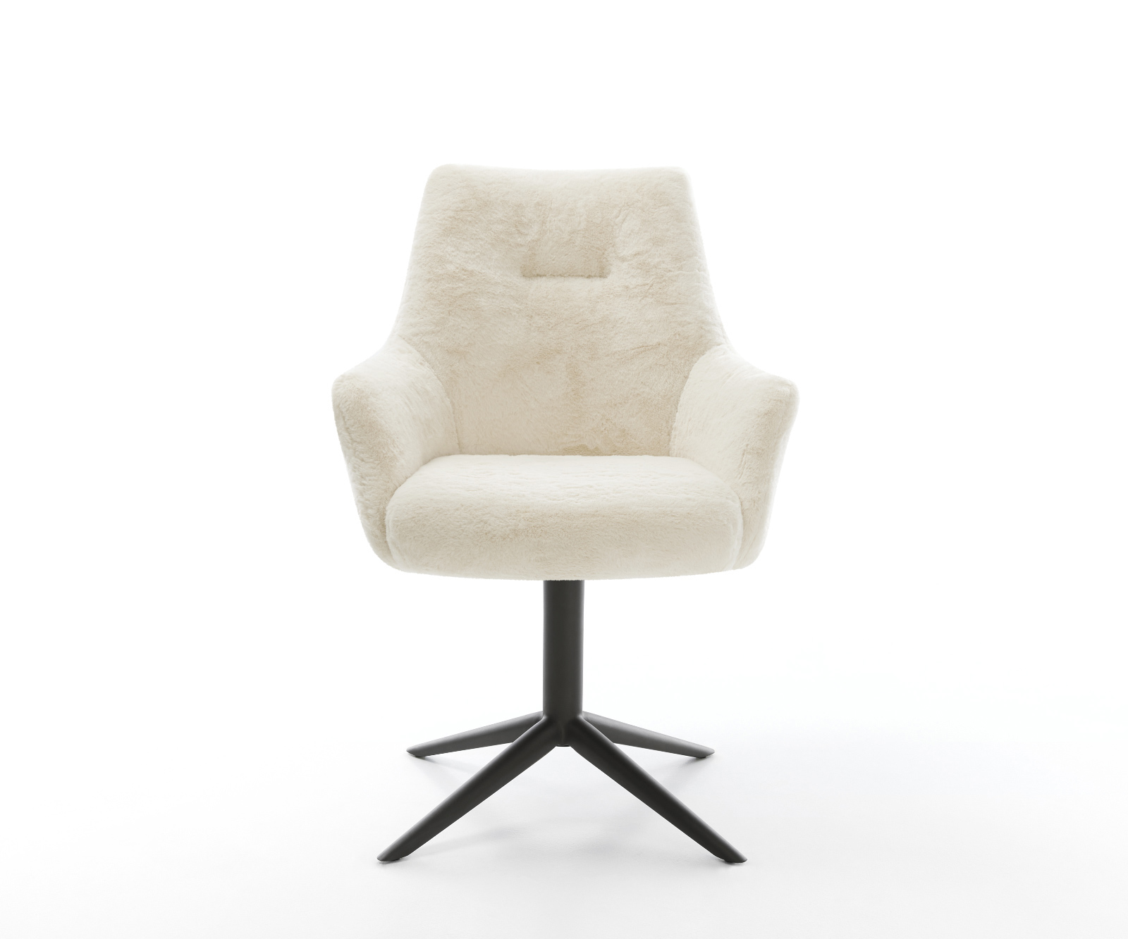 Jedálenská stolička Alja-Flex s opierkami plyšový manšester krémovo biela krížová podstava čierna 360° otočný hojdacia funkcia vrecková pružina