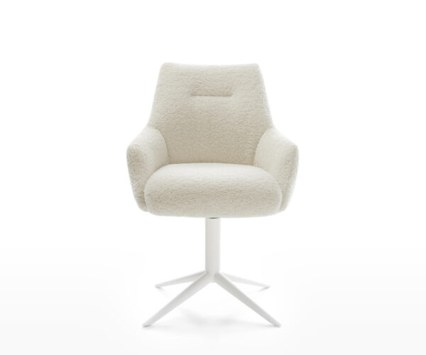 Jedálenská stolička Alja s opierkami vytvára svojím vynikajúcim dizajnom dokonalú harmóniu medzi tvarom a komfortom. Elegantné línie pôsobia nadčasovo a elegantne. Prepracovaný záhyb v oblasti operadla upúta všetku pozornosť na mäkko tvarované, vertikálne skladanie na vnútornej strane, ktoré krásne kontrastuje s okrúhlou a tvarovo pevnú vonkajšou stranou. Štíhle opierky na ruky pozývajú na sedenie. Vynikajúce čalúnenie s integrovaným, obzvlášť kvalitným vreckovým pružinovým jadrom zabezpečuje, že už nikdy nebudete chcieť sedieť na inej jedálenskej stoličke ako na Alja s opierkami. Pretože Alja s opierkami je dizajn, kvalita a komfort v dychberúcom prevedení.