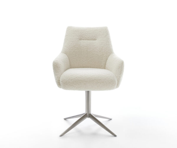 Jedálenská stolička Alja-Flex s opierkami teddy látka béžová krížová podstava nerezová oceľ 360° otočný hojdacia funkcia vrecková pružina