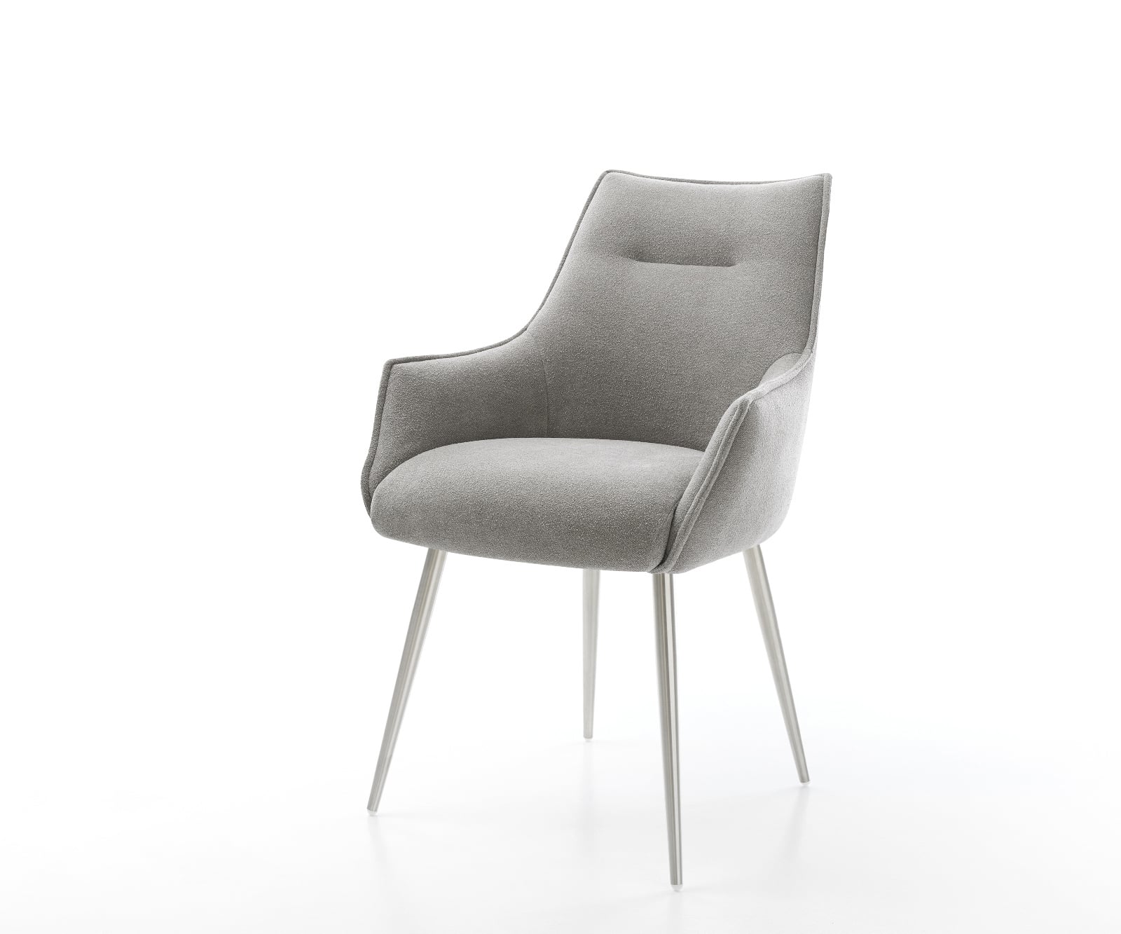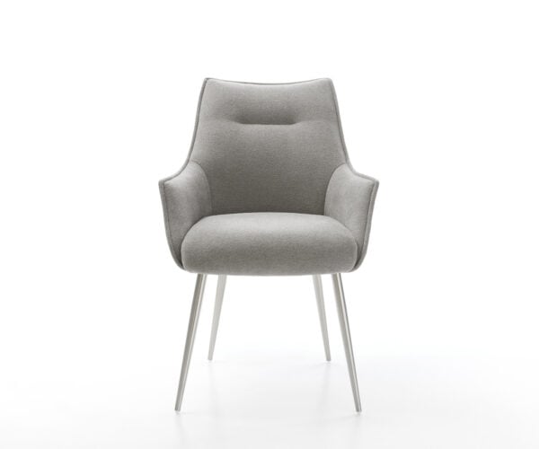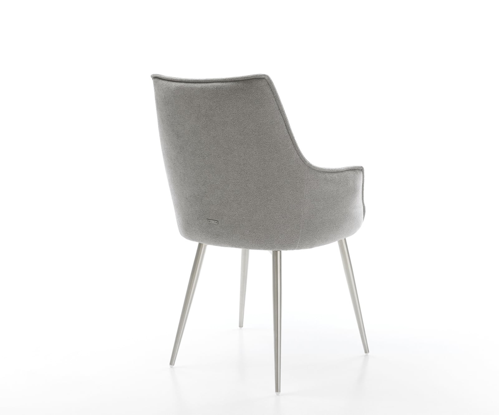 Jedálenská stolička Alja-Flex s opierkami texturovaná látka mäkký sivá 4-nohá zúžená nerezová oceľ vrecková pružina