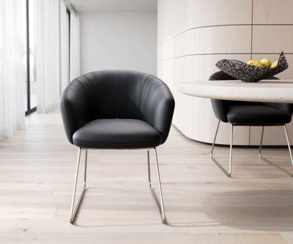 Jedálenská stolička Caja s opierkami pravá koža čierna – stoličkový systém od DELIFE