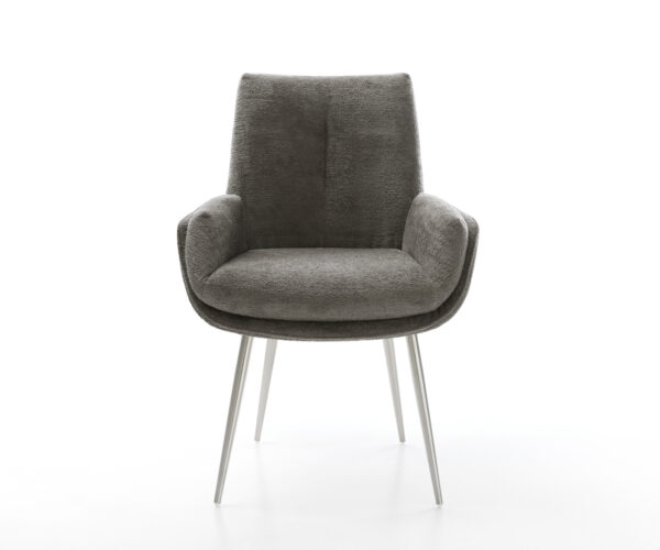 Jedálenská stolička Clea-Flex bouclé mäkký tmavobéžová 4-nohá zúžená nerezová oceľ