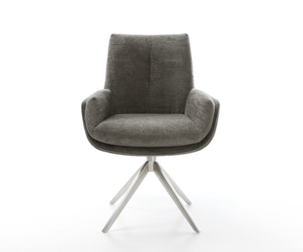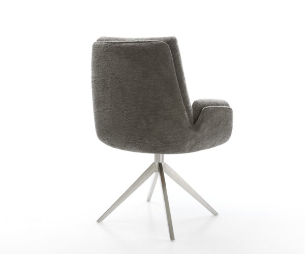 Jedálenská stolička Clea-Flex bouclé mäkký tmavobéžová krížová podstava široká nerezová oceľ 360° otočná hojdacia funkcia