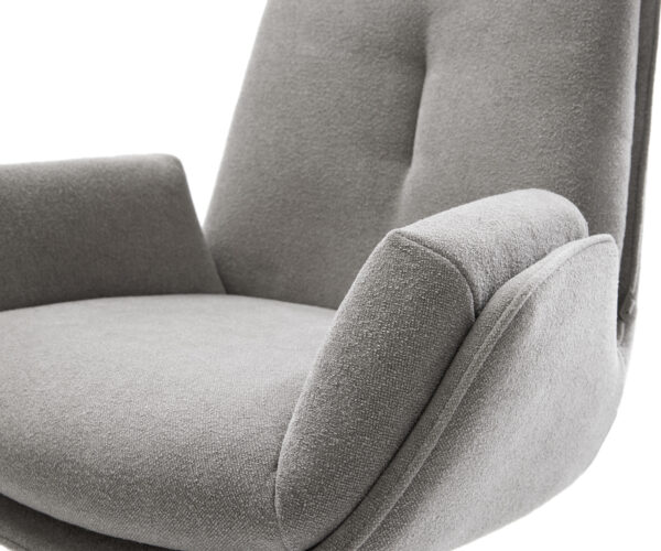 Robustná texturovaná látka v jemnej sivej farbe nie je len odolná, ale zabezpečuje aj decentný, štýlový vzhľad. Ideálna pre intenzívne využívané jedálne s požiadavkami na dizajn a každodennú praktickosť.