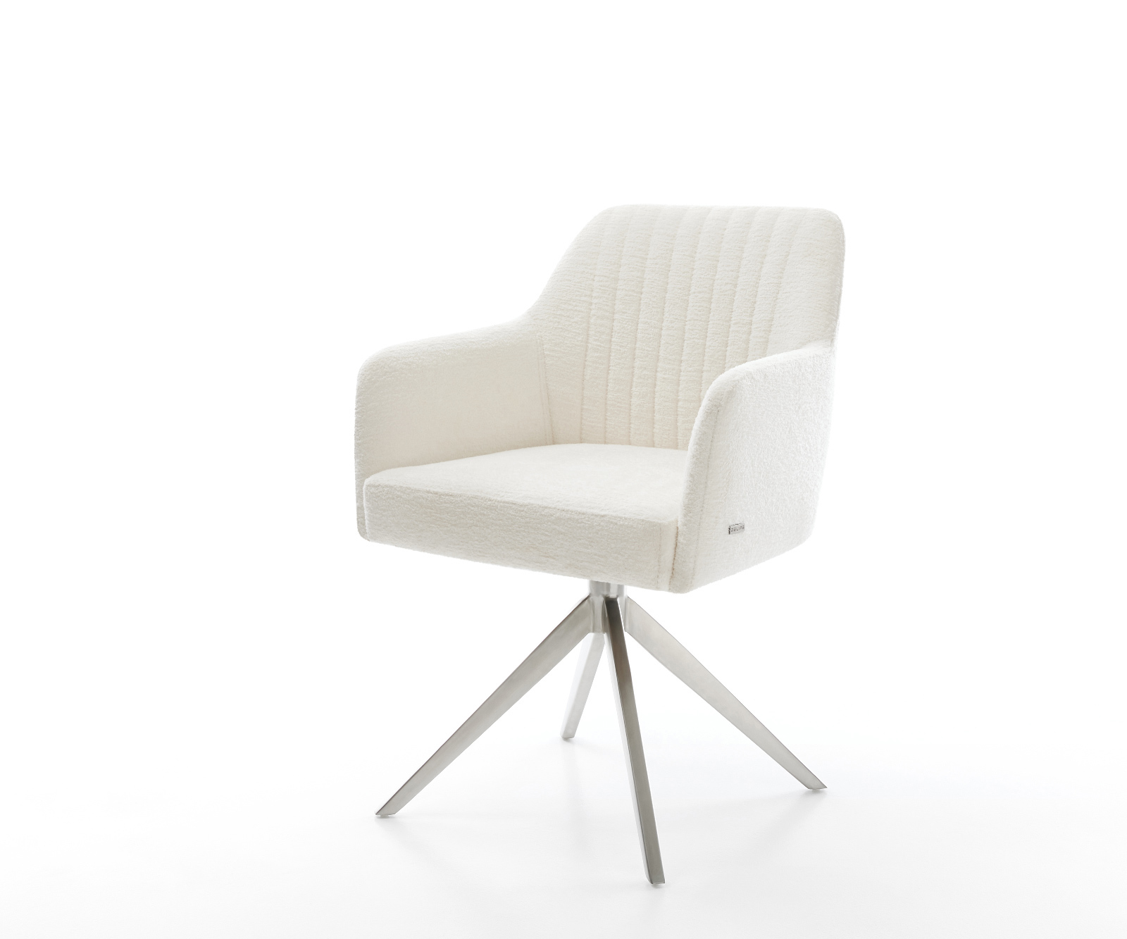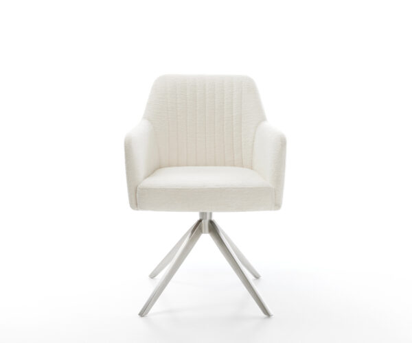 Jedálenská stolička Greg-Flex bouclé mäkký béžová krížová podstava široká nerezová oceľ 360° otočný hojdacia funkcia vrecková pružina