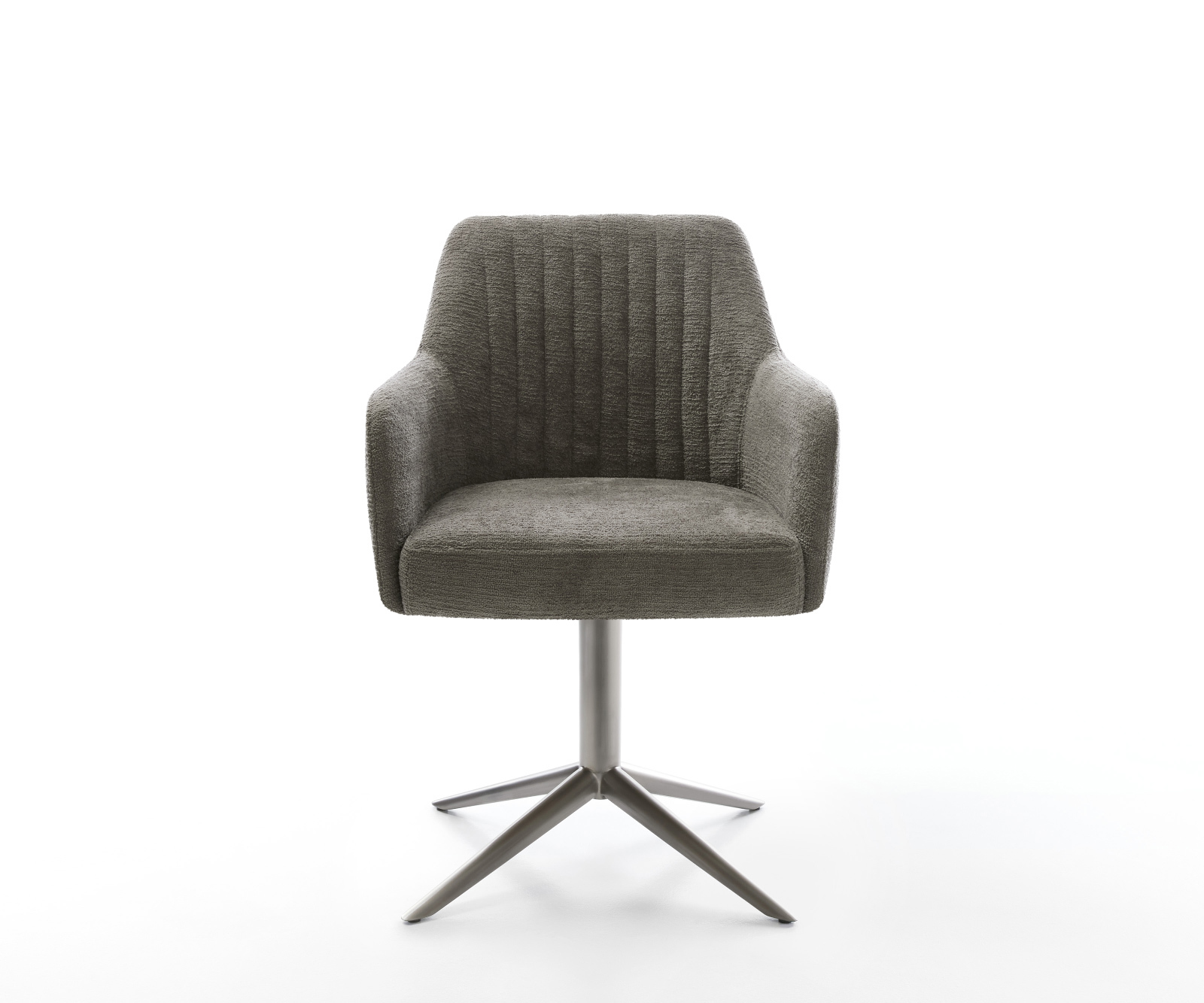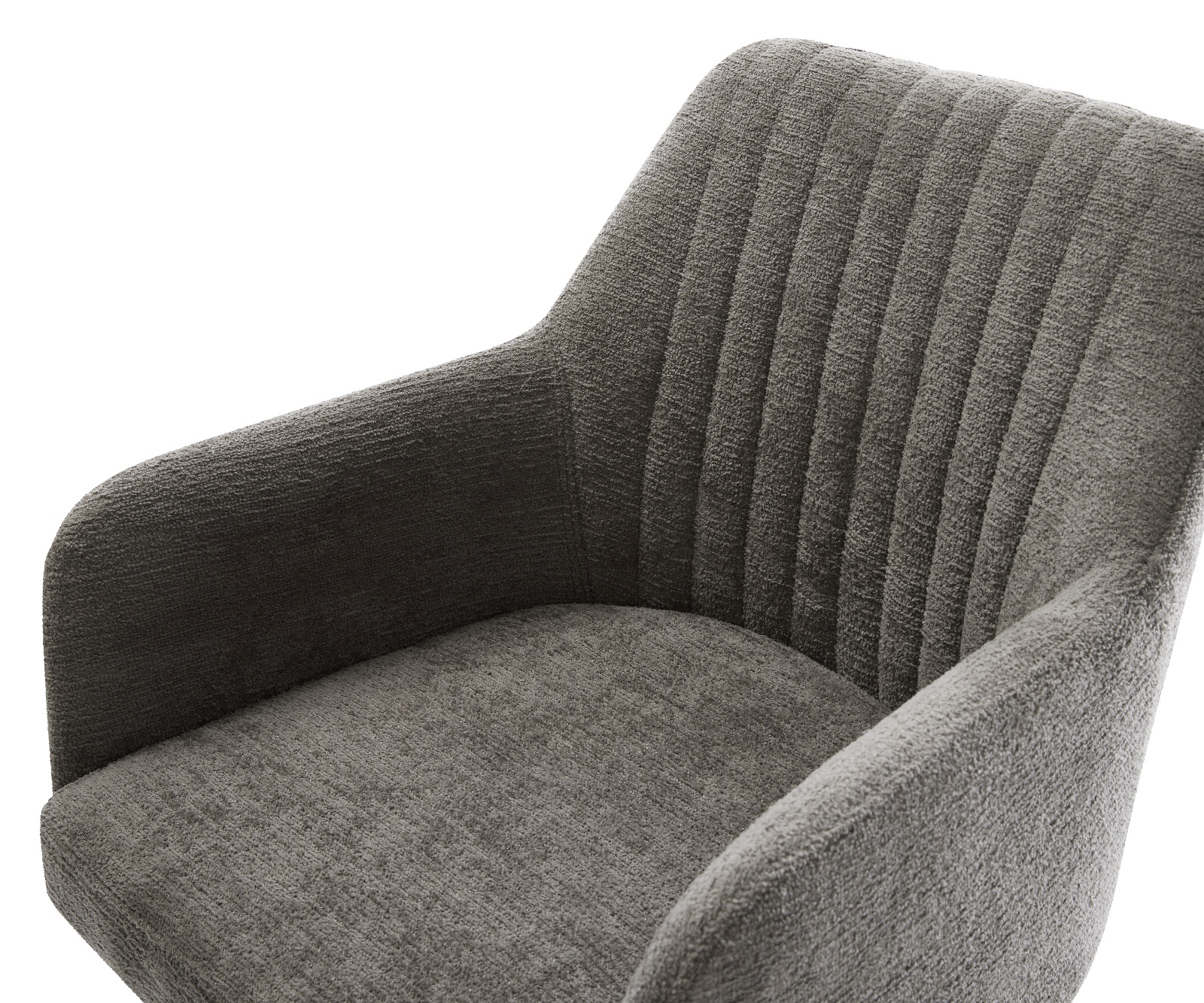 Jedálenská stolička Greg-Flex bouclé mäkký tmavobéžová krížová podstava grafitová 360° otočný hojdacia funkcia vrecková pružina