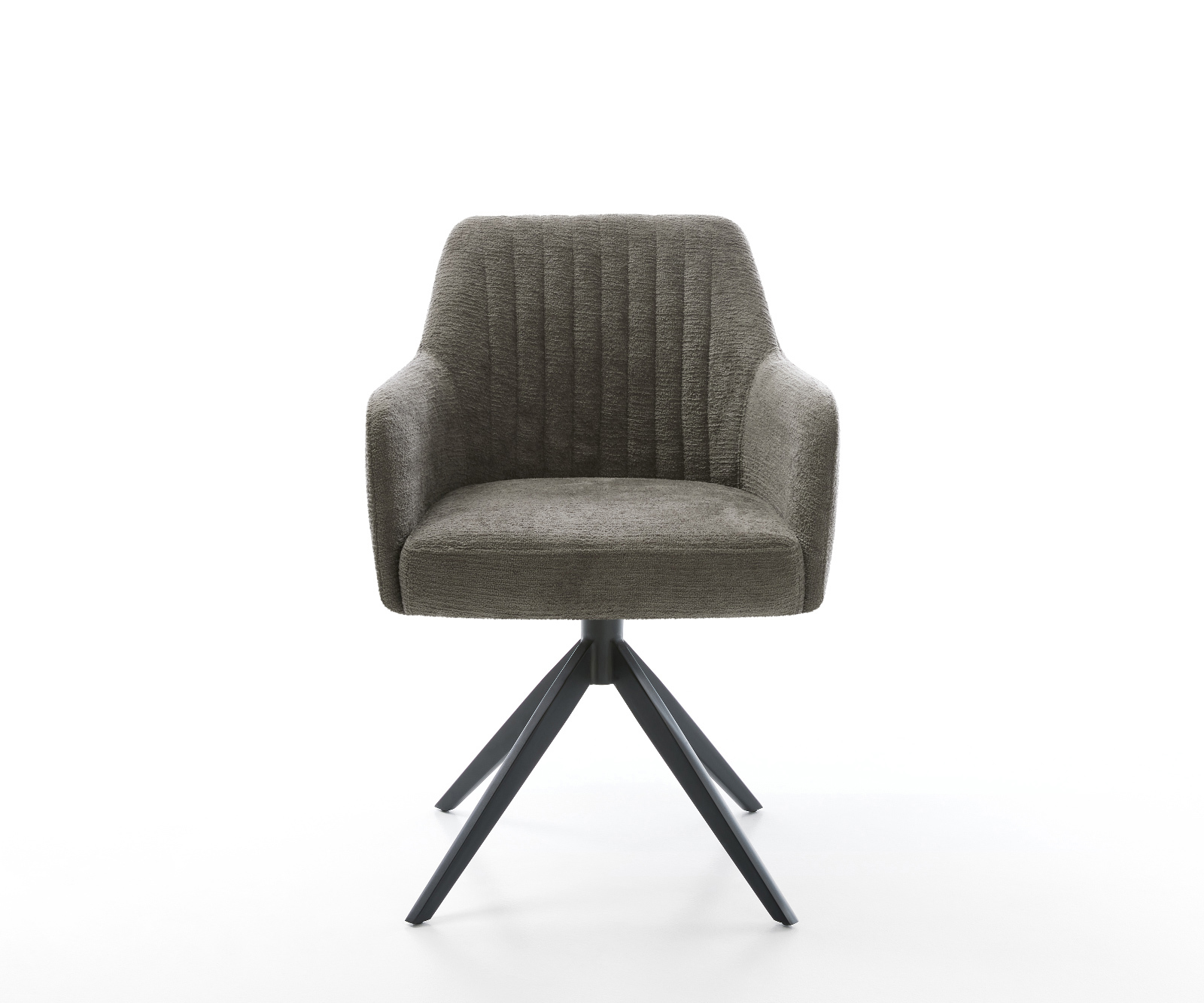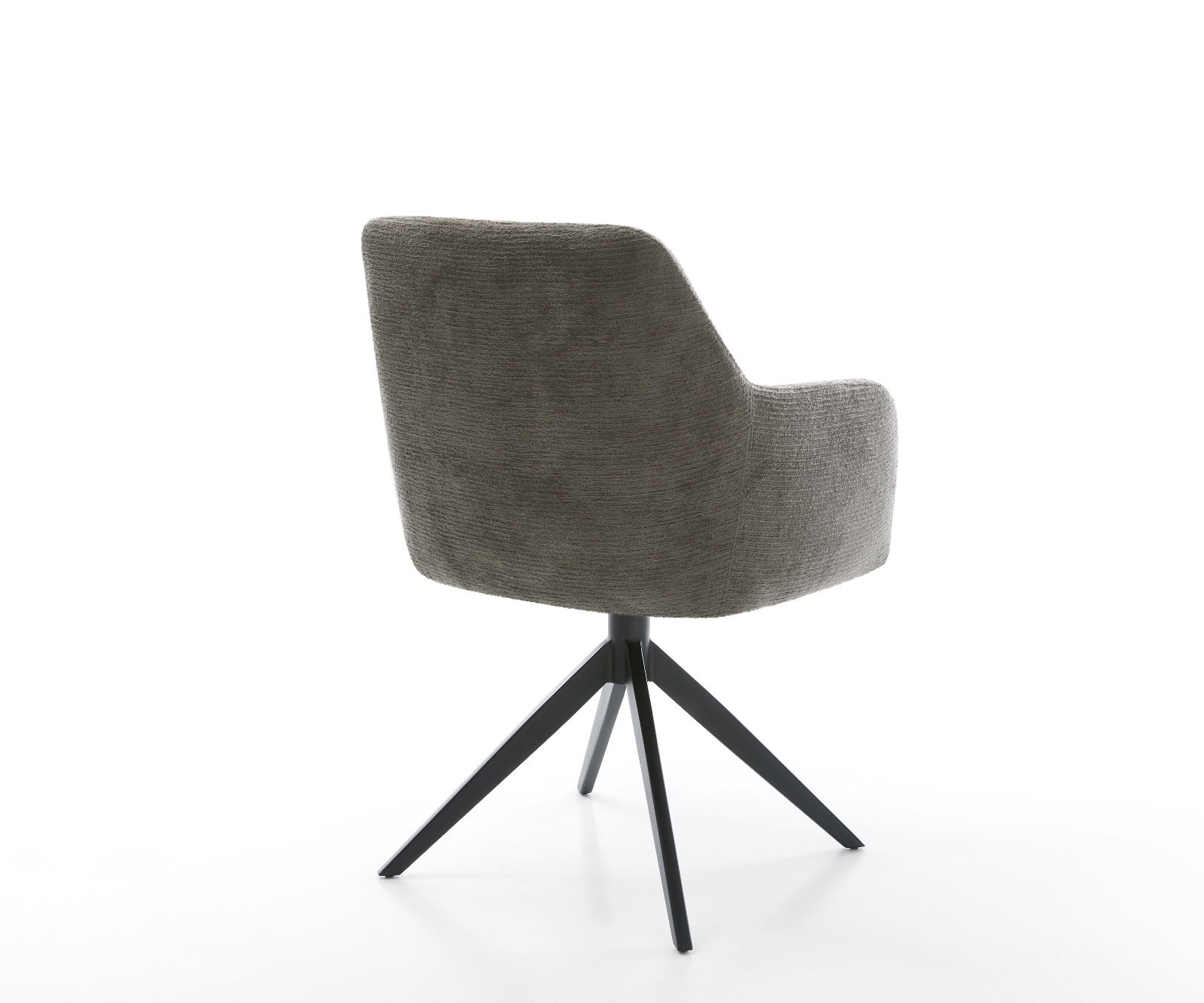 Jedálenská stolička Greg-Flex bouclé mäkký tmavobéžová krížová podstava široká čierna 360° otočná hojdacia funkcia vrecková pružina