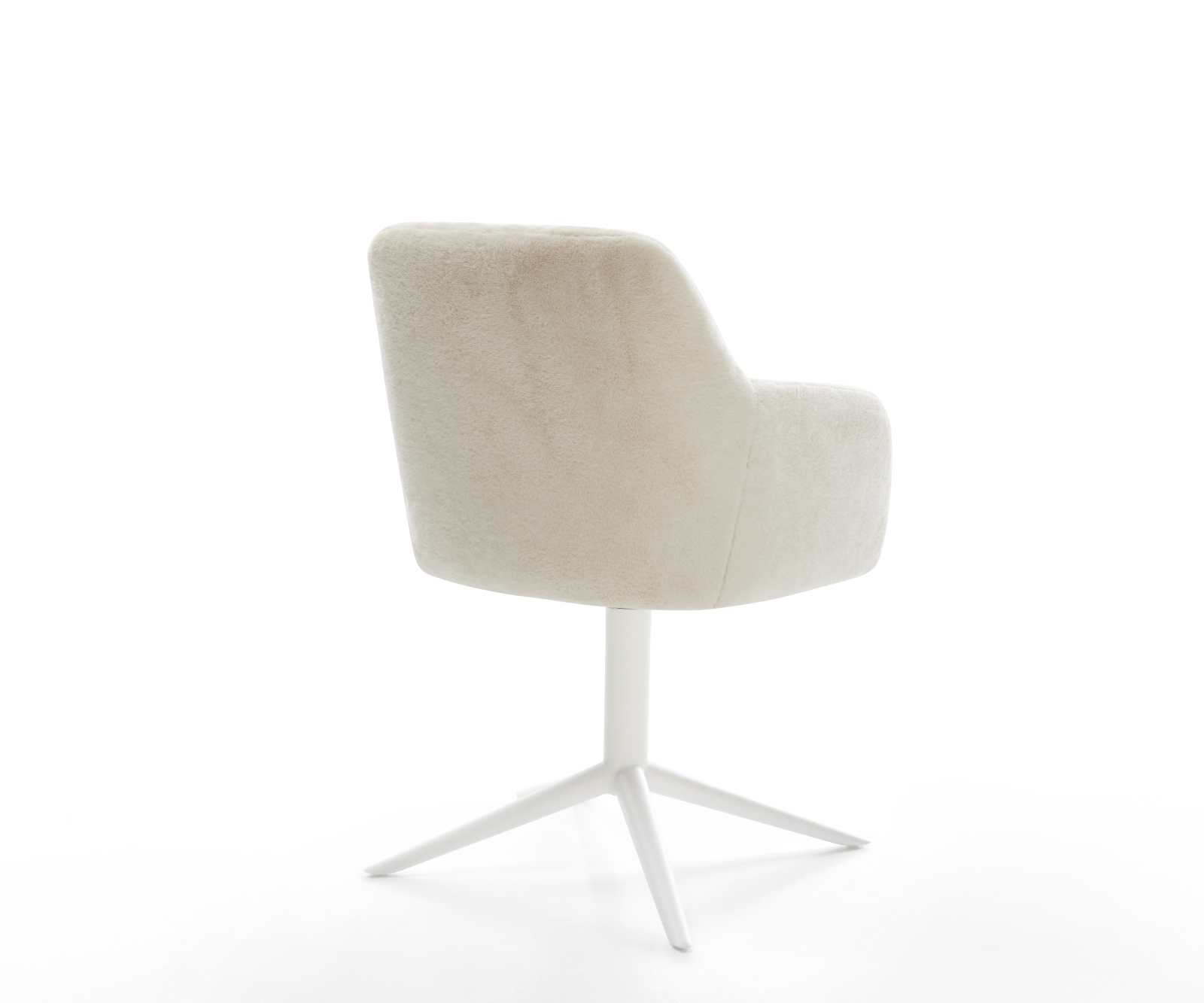 Ušľachtilý plyšový poťah v jemnej krémovo-bielej farbe dodáva stoličke obzvlášť elegantnú charizmu. Mäkký povrch poskytuje najvyšší komfort sedenia – ideálne pre moderné jedálne a obývacie priestory s kvalitným zariadením.