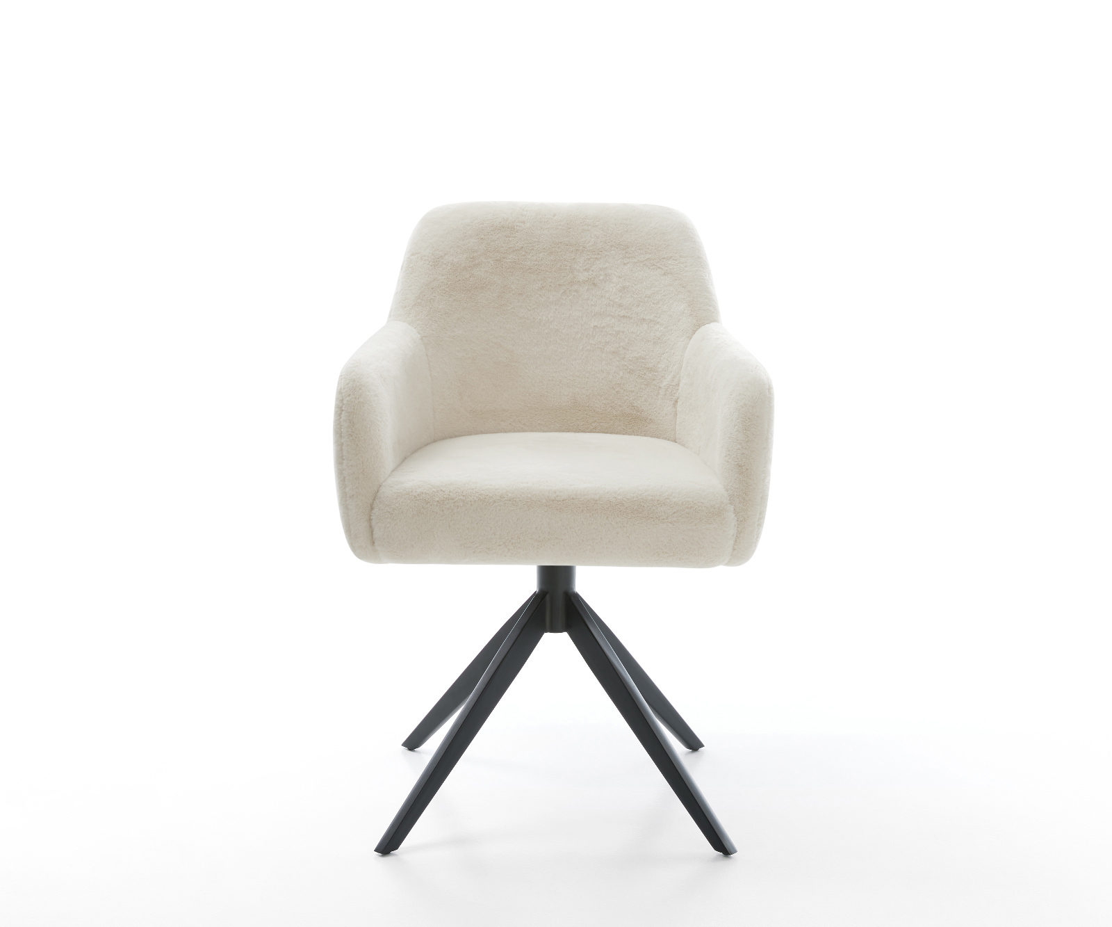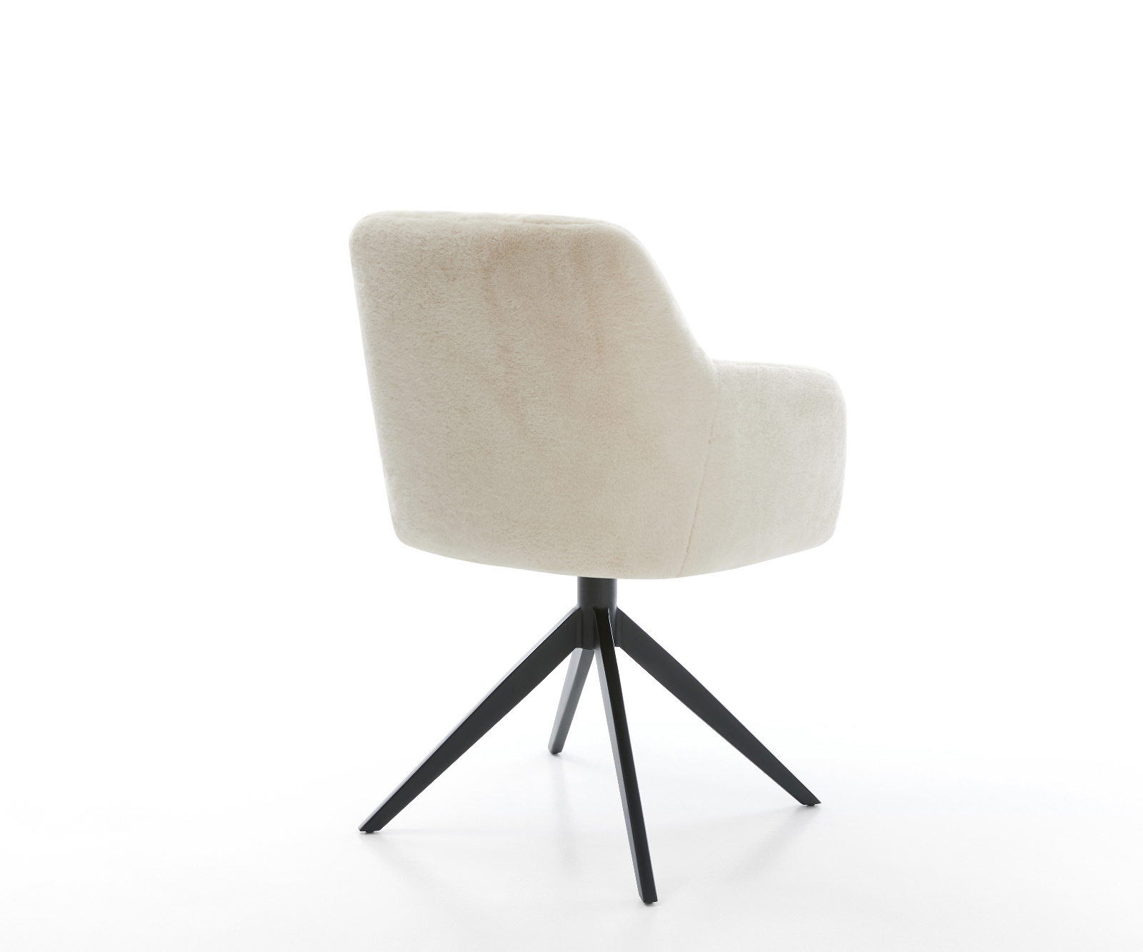 Jedálenská stolička Greg-Flex plyšový manšester krémovo biela krížová podstava široká čierna 360° otočná hojdacia funkcia vrecková pružina