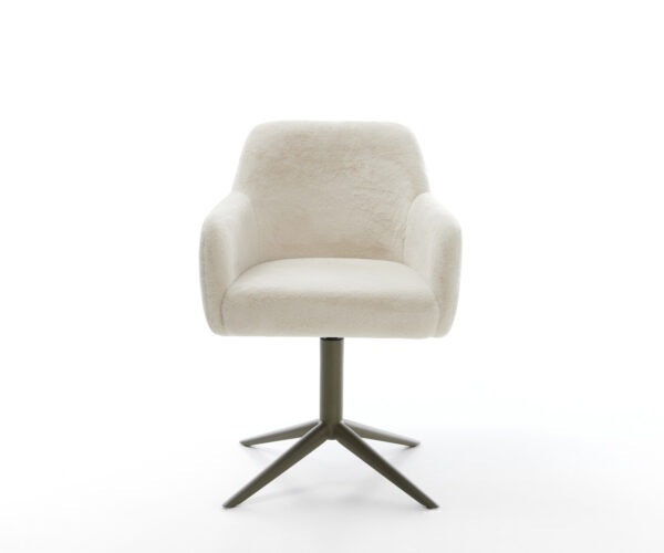 Jedálenská stolička Greg-Flex plyšový manšester krémovo biela krížová podstava titánová farba 360° otočný hojdacia funkcia vrecková pružina