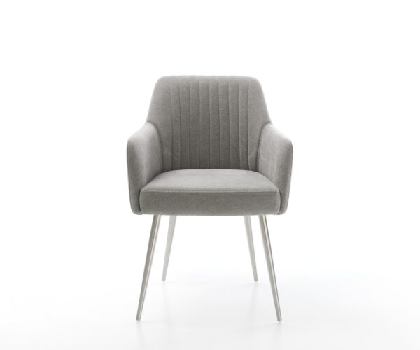 Robustná texturovaná látka v jemnej svetlosivej farbe nie je len odolná, ale zároveň vytvára decentný a štýlový vzhľad. Ideálna pre intenzívne využívané jedálenské priestory s požiadavkami na dizajn a každodennú použiteľnosť.