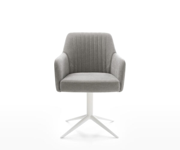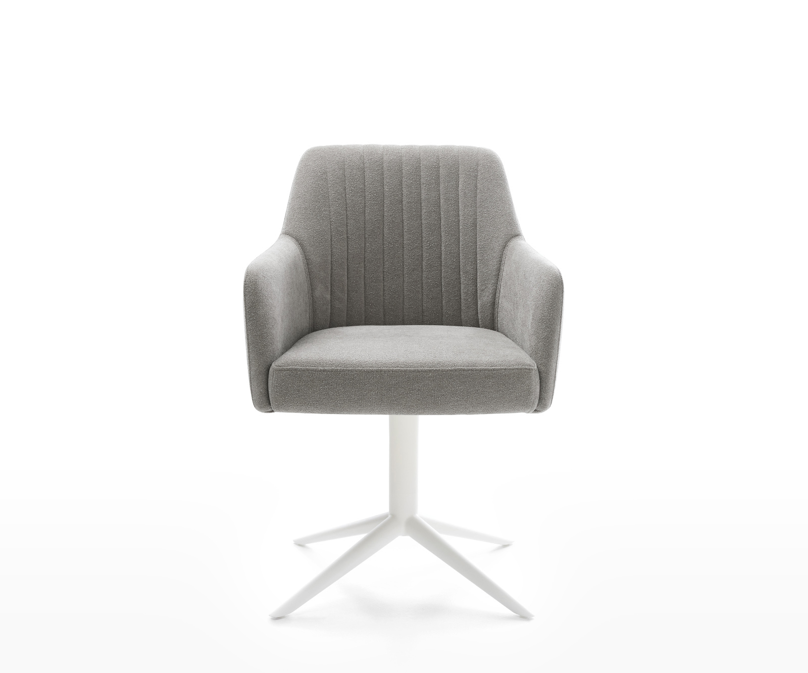 Jedálenská stolička Greg-Flex štruktúrovaná látka mäkký sivá krížová podstava biela 360° otočný hojdacia funkcia vrecková pružina