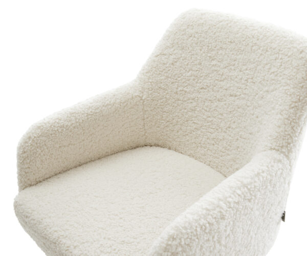 Čalúnený mäkkou teddy látkou v béžovej farbe, ktorá zabezpečuje obzvlášť príjemný pocit pri sedení. Jemná látka prináša útulnosť a štýl k jedálenskému stolu – ideálne pre domácku atmosféru.