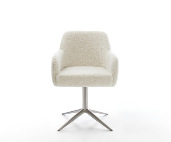 Jedálenská stolička Greg-Flex teddy látka béžová krížová podstava nerezová oceľ 360° otočný hojdacia funkcia vrecková pružina
