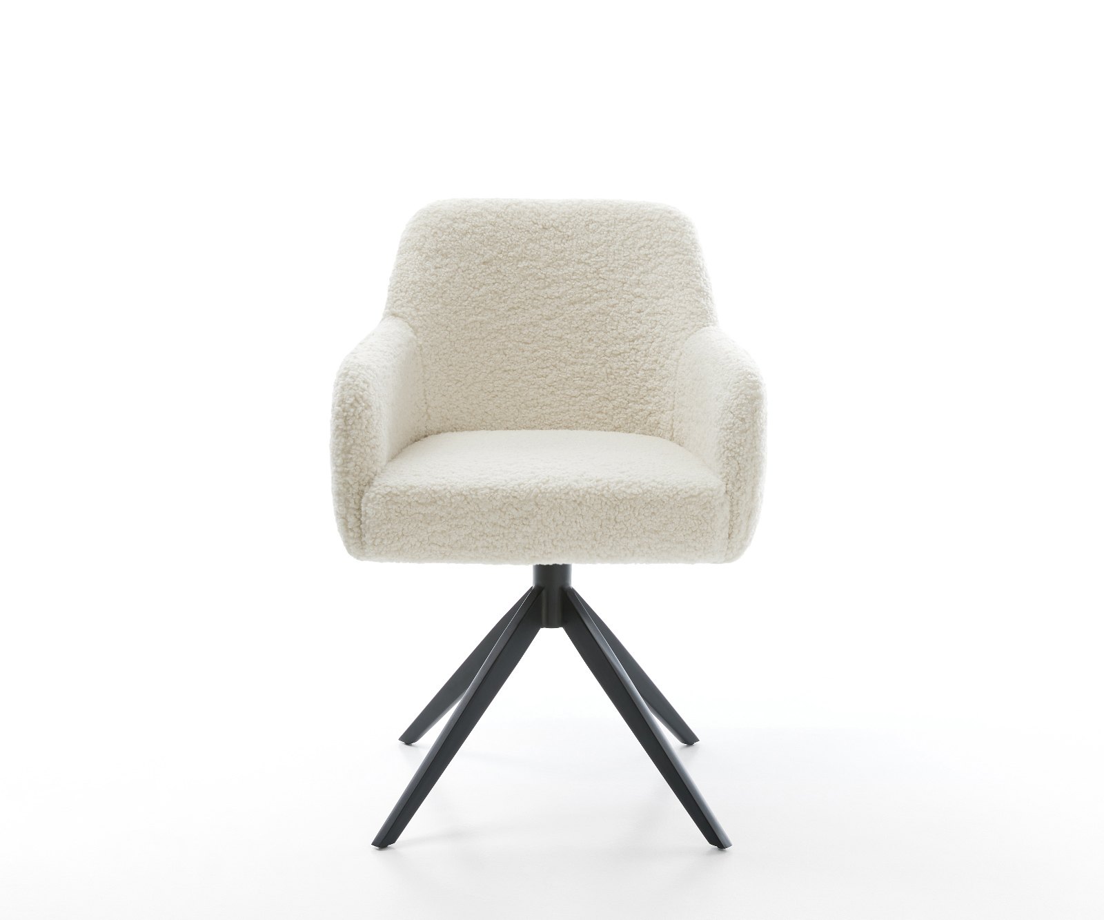 Čalúnený mäkkou teddy látkou v béžovej farbe, ktorá zabezpečuje obzvlášť príjemný pocit pri sedení. Mäkká látka prináša útulnosť a štýl k jedálenskému stolu – ideálne pre domácku atmosféru.
