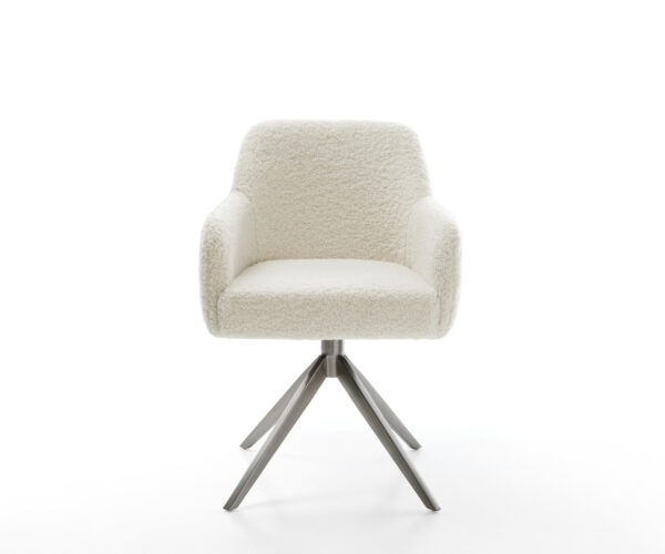 Čalúnený plyšovou teddy látkou v béžovej farbe, ktorá zabezpečuje mimoriadne príjemný pocit pri sedení. Mäkká látka prináša útulnosť a štýl k jedálenskému stolu – ideálne pre domácku atmosféru.