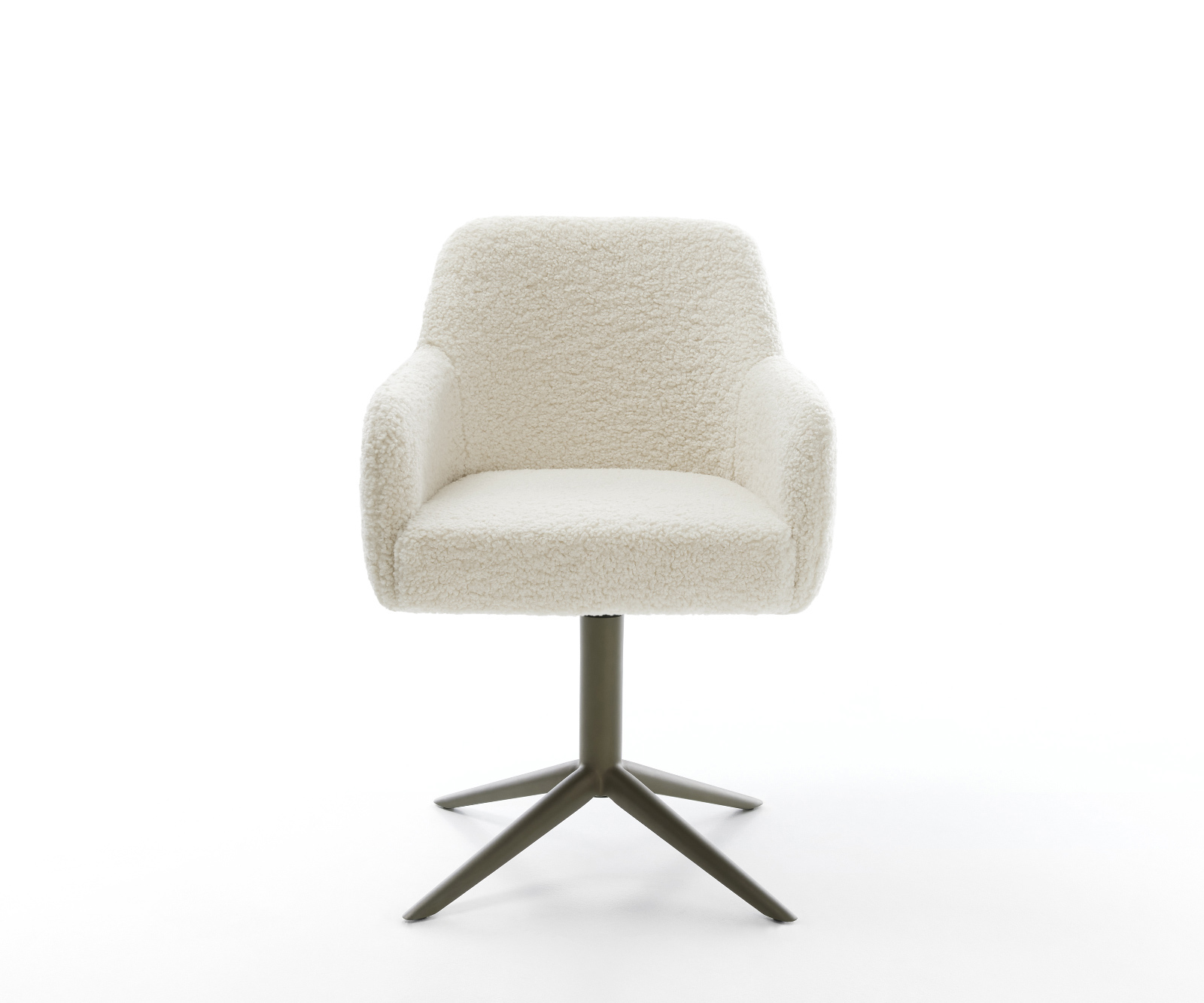 Jedálenská stolička Greg-Flex teddy látka béžová krížová podstava titánová farba 360° otočný hojdacia funkcia vrecková pružina
