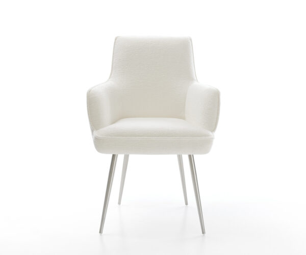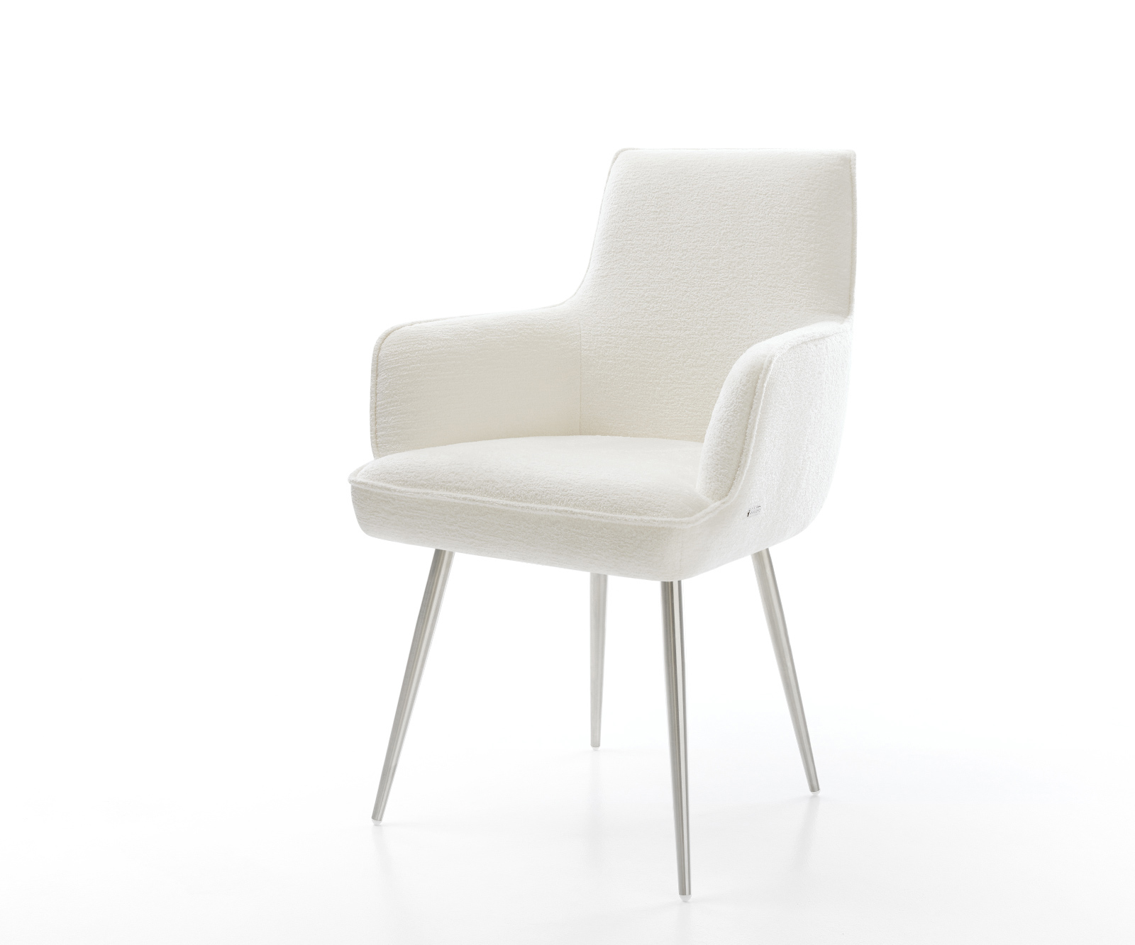 Jedálenská stolička Heira-Flex s opierkami bouclé mäkký béžová 4-nohá zúžená nerezová oceľ vrecková pružina