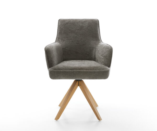 So svojou prírodnou eleganciou a jemným softlookom zabezpečuje jedálenská stolička Heira s opierkami v tvojej jedálni veľkú pozornosť. Špicatá opierka a plynulé prechody medzi sedadlom, opierkou a operadlom pôsobia nádherne nadčasovo a dokonale zapadajú do tvojho obľúbeného štýlu zariadenia. Komfort sedenia pri Heira s opierkami tiež nechýba. O to sa stará nielen vysoké operadlo, ale predovšetkým vynikajúce čalúnenie s kvalitným vreckovým pružinovým jadrom. Premyslené a elegantné dizajnové majstrovské dielo spája funkčnosť, vedomosti a kreativitu do zážitku zo sedenia, ktorý nemá konkurenciu.