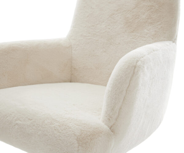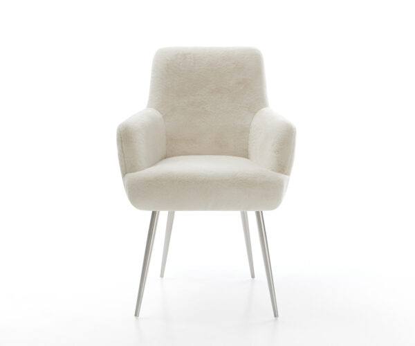 Luxusný plyšový poťah v jemnej krémovo-bielej farbe dodáva stoličke obzvlášť elegantnú charizmu. Mäkký povrch ponúka najvyšší komfort sedenia – ideálne pre moderné jedálne a obytné priestory s kvalitným zariadením.