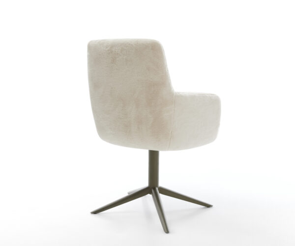 Luxusný plyšový poťah v jemnej krémovo-bielej farbe dodáva stoličke obzvlášť elegantnú charizmu. Mäkký povrch poskytuje najvyšší komfort sedenia – ideálne pre moderné jedálne a obytné priestory s kvalitným zariadením.