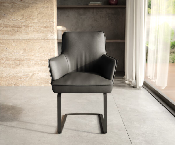 Jedálenská stolička Heira-Flex s opierkami pravá koža čierna jedálenská stolička plochá čierna vrecková pružina