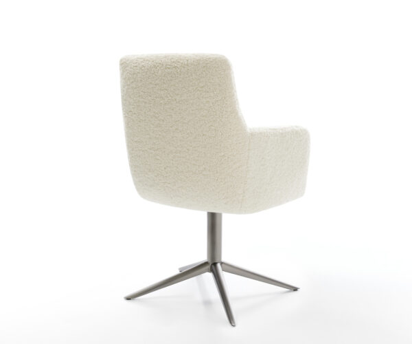Čalúnená plyšovou teddy látkou v béžovej farbe, ktorá zabezpečuje obzvlášť príjemný pocit pri sedení. Mäkká látka prináša útulnosť a štýl k jedálenskému stolu – ideálne pre domácku atmosféru.