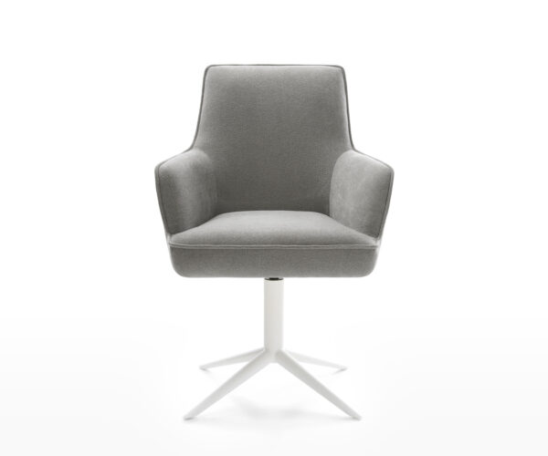 So svojou prírodnou eleganciou a jemným softlookom prináša jedálenská jedálenská stolička Heira s opierkami v tvojej jedálni veľa pozornosti. Optika špičkových vankúšov a plynulé prechody tvarov sedadla, opierky a operadla pôsobia nádherne nadčasovo a dokonale zapadajú do tvojho obľúbeného štýlu zariadenia. Komfort sedenia pri Heira s opierkami tiež nesmie chýbať. O to sa stará nielen vysoké operadlo, ale najmä vynikajúce čalúnenie s kvalitným vreckovým pružinovým jadrom. Premyslené a elegantné dizajnové majstrovské dielo spája funkčnosť, vedomosti a kreativitu do zážitku zo sedenia, ktorý nemá obdobu.