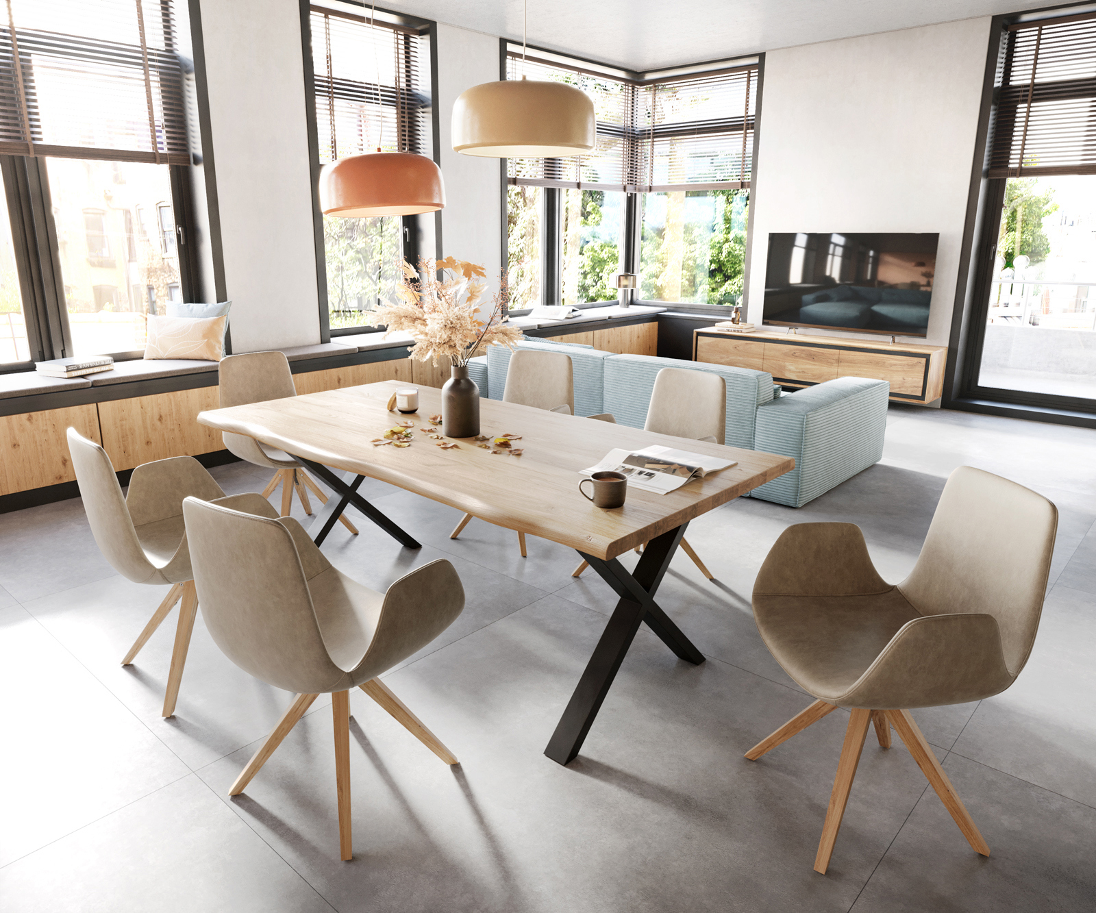 Moderná krížová podstava s guľatými nohami je inšpirovaná populárnym škandinávskym štýlom a dodáva každej jedálenskej stoličke Flex prirodzene harmonický vzhľad. Podstava je otočná až do 180 stupňov a má praktickú spätnú funkciu.