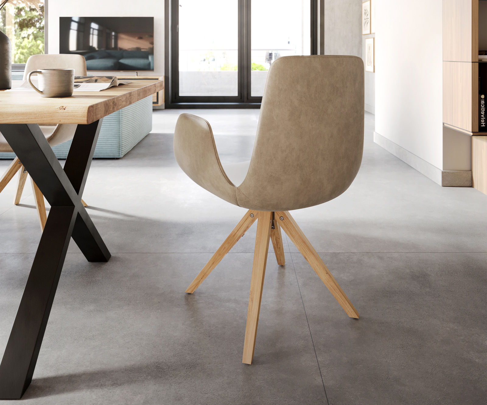 Jedálenská stolička Ilia-Flex s opierkami mikrovlákno béžová vintage drevená podstava hranatá prírodná