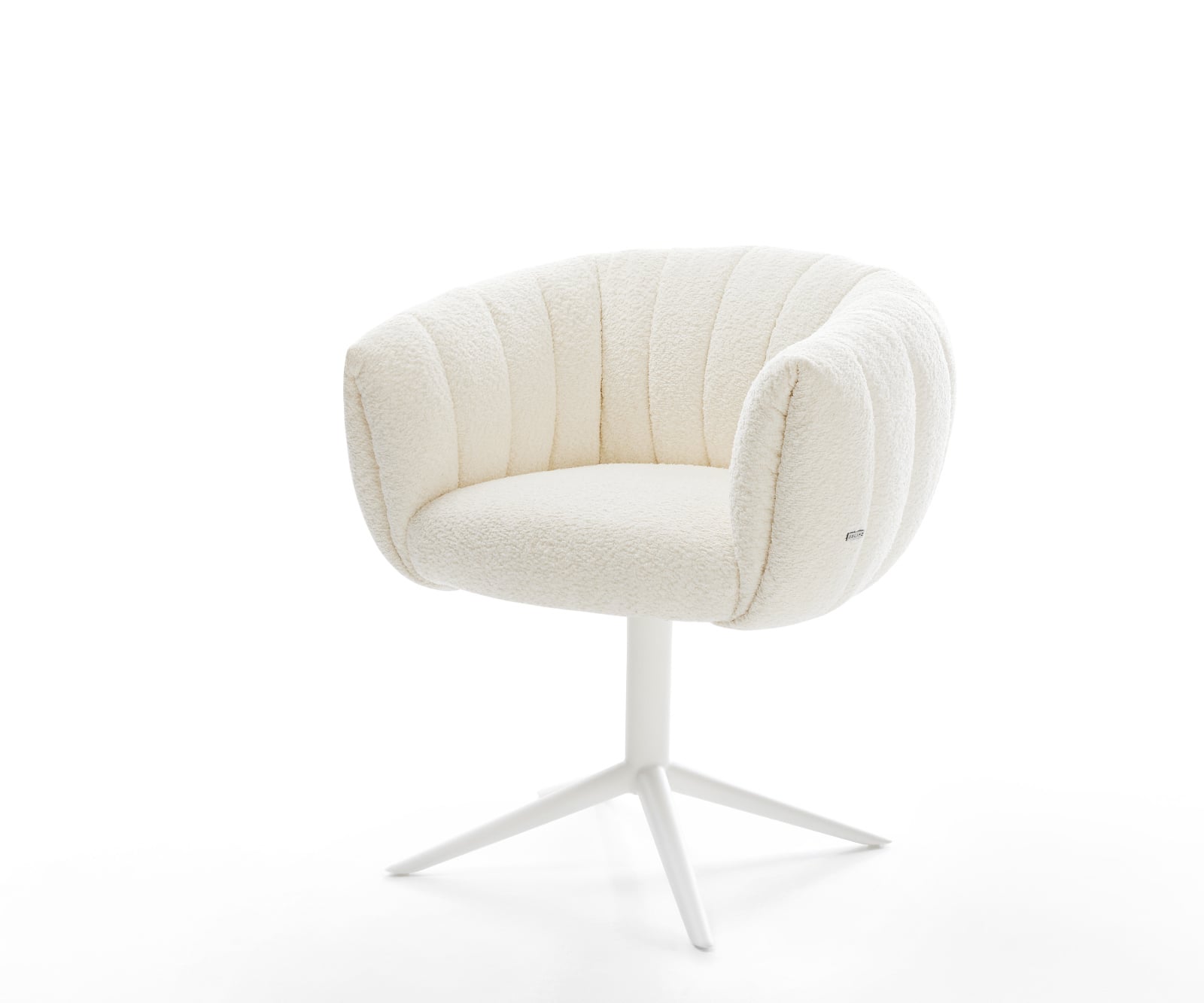 Elegantná látka bouclé je mimoriadne mäkká a príjemná na dotyk, zároveň však odolná a nenáročná na údržbu. Žiari v teplom bielom odtieni a v každej jedálni vytvára nadčasovo krásne akcenty.