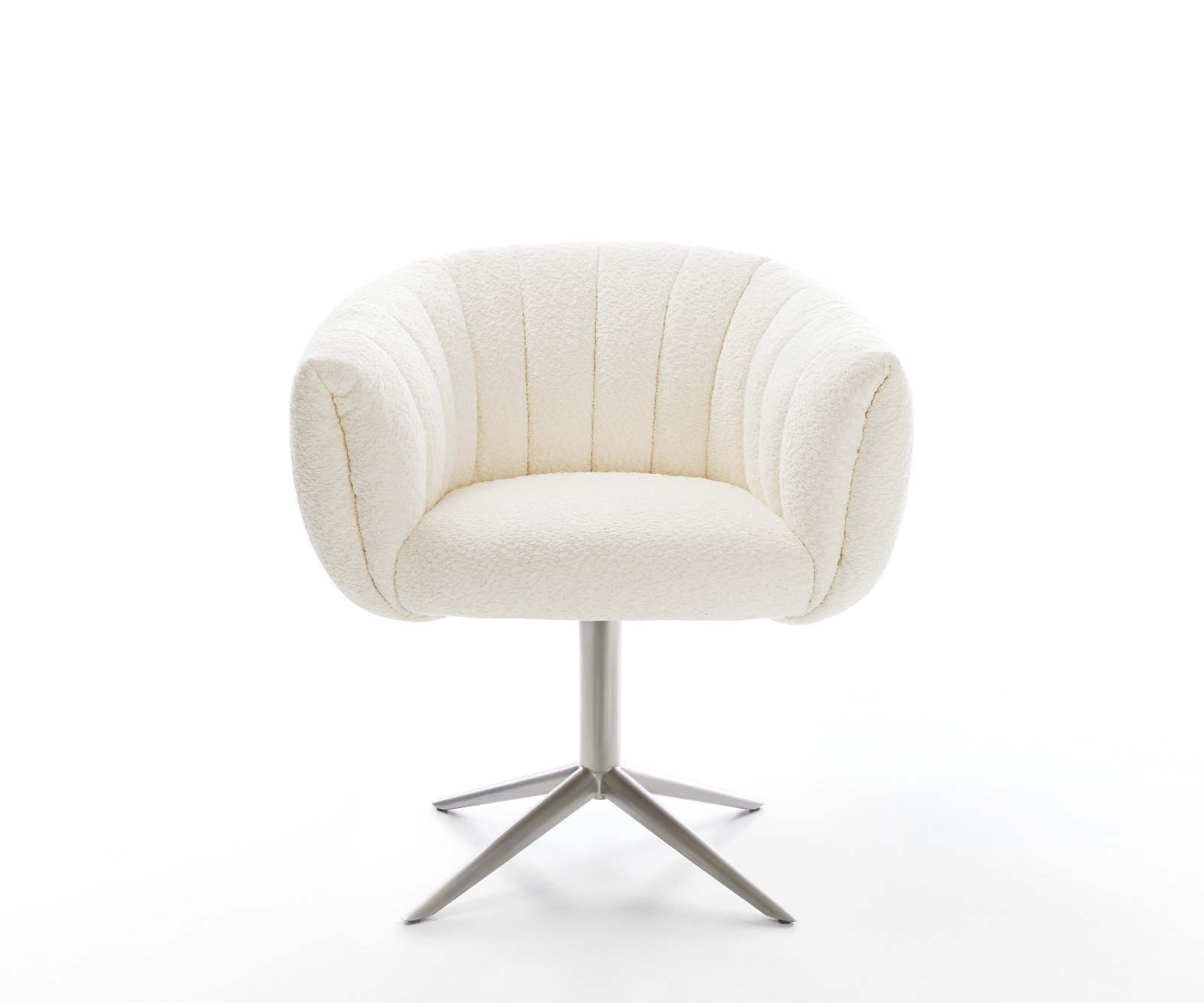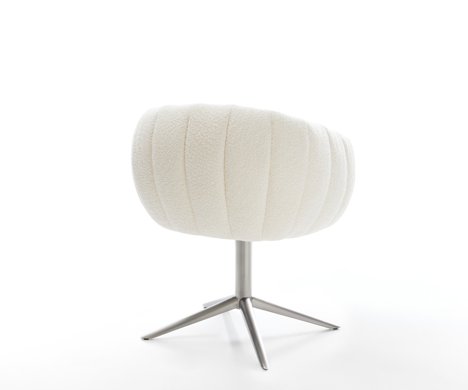 Jedálenská stolička Jada-Flex bouclé biela podstava nerezová oceľ 360° otočný hojdacia funkcia vrecková pružina