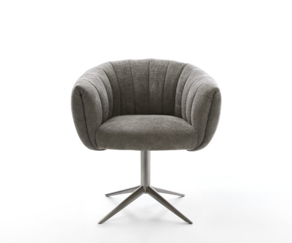 Táto stolička zaujme kvalitným poťahom z bouclé soft v teplom tmavobéžovom odtieni. Jemná štruktúra a pokojná farba dodávajú nábytku modernú, útulnú charizmu – ideálnu do jedálne alebo čitateľského kútika.