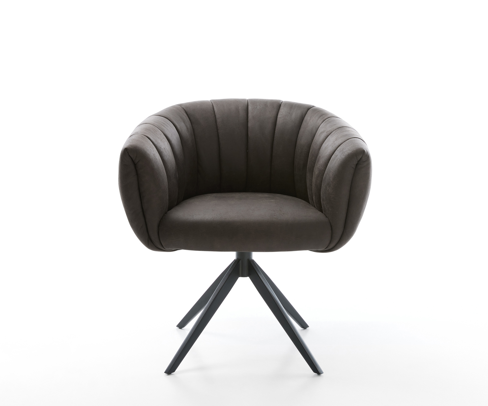 Jedálenská stolička Jada-Flex mikrovlákno antracit vintage krížová podstava široká čierna 360° otočná hojdacia funkcia vrecková pružina