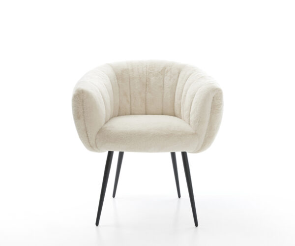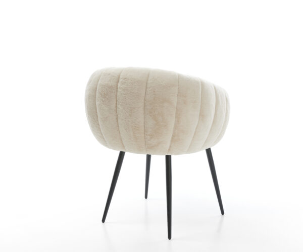 Noble plyšový poťah v jemnej krémovo-bielej farbe dodáva stoličke obzvlášť elegantnú charizmu. Mäkký povrch poskytuje najvyšší komfort sedenia – ideálne pre moderné jedálne a obývacie priestory s kvalitným zariadením.