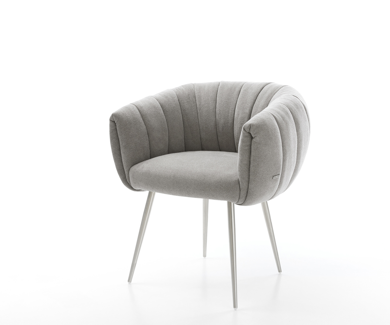 Jedálenská stolička Jada-Flex texturovaná látka mäkký sivá 4-nohá zúžená nerezová oceľ vrecková pružina