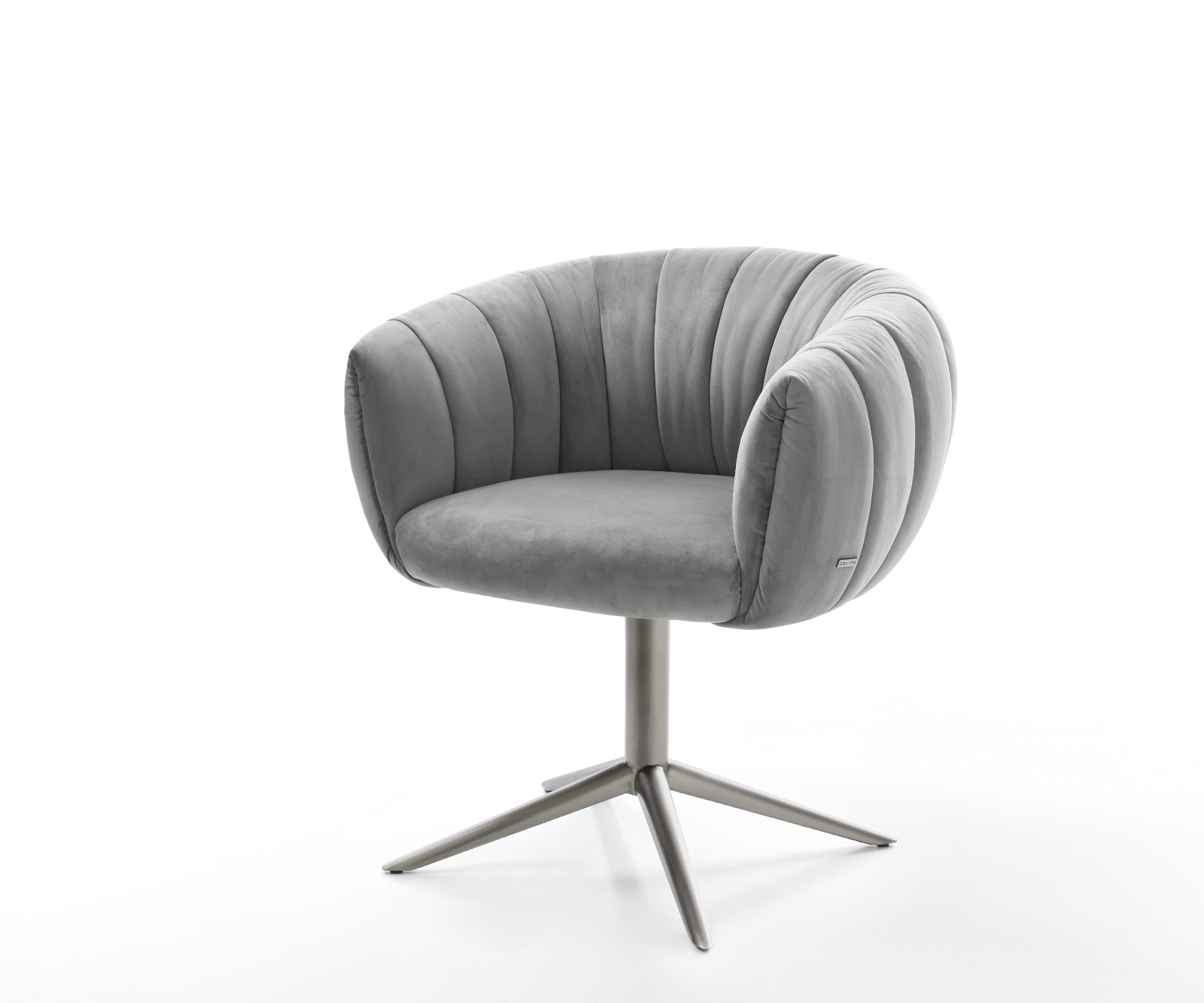 Jedálenská stolička Jada-Flex zamat sivá krížová podstava grafitová 360° otočná hojdacia funkcia vrecková pružina