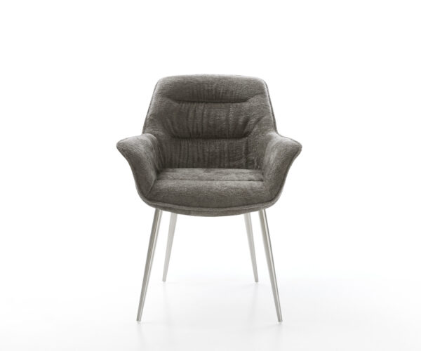 Jedálenská stolička Kaira-Flex bouclé mäkký tmavobéžová 4-nohá zúžená nerezová oceľ
