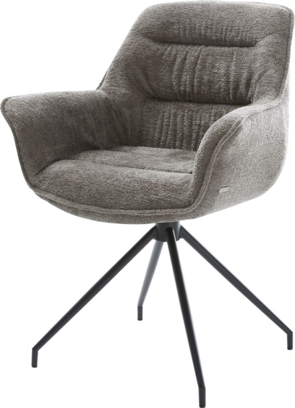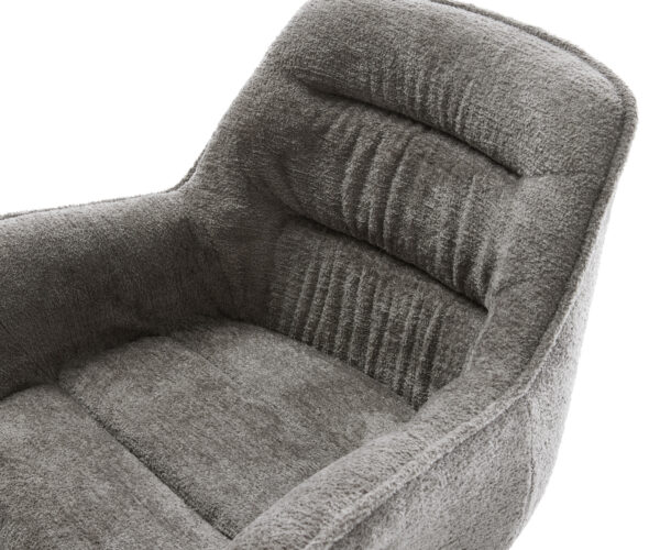 Táto stolička zaujme kvalitným poťahom z bouclé v teplom tmavobéžovom odtieni. Jemná štruktúra a pokojná farba dodávajú nábytku moderný, útulný vzhľad – ideálne do jedálne alebo čítacieho kútika.