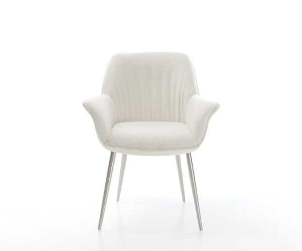 Jedálenská stolička Keila-Flex s opierkami bouclé mäkká béžová 4-nohá zúžená nerezová oceľ