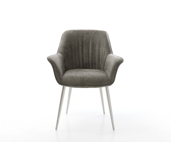 Jedálenská stolička Keila vyniká svojim extravagantným dizajnom s celoplošne mäkko čalúnenými opierkami, ktoré nie sú len pôsobivo krásne, ale zabezpečujú aj jedinečný komfort sedenia vo vašej jedálni. Nízke operadlo podčiarkuje mimoriadne moderný vzhľad tejto jedinečnej stoličky a robí z tejto kreácie Flex skutočný magnet na pohľady.