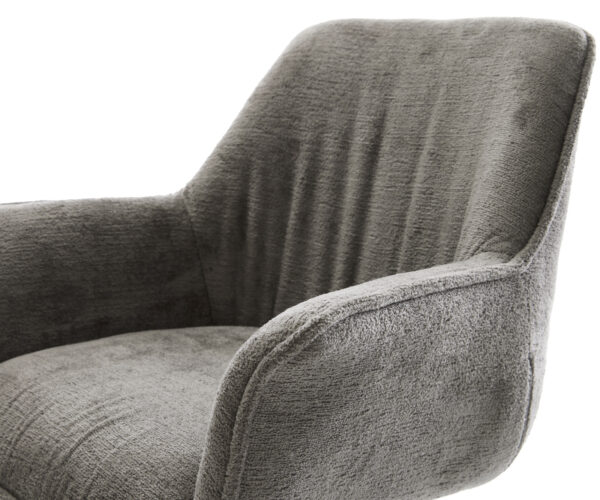Táto stolička zaujme kvalitným poťahom z bouclé v teplom tmavobéžovom odtieni. Jemná štruktúra a pokojná farba dodávajú nábytku modernú, útulnú charizmu – ideálne do jedálne alebo čitateľského kútika.