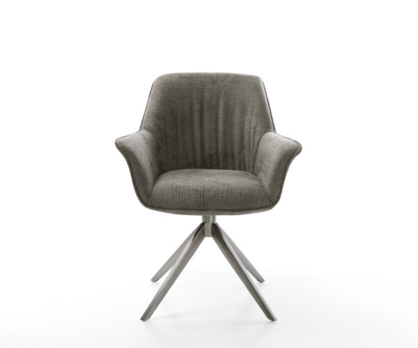 Jedálenská stolička Keila-Flex s opierkami bouclé mäkký tmavobéžová krížová podstava široká grafitová 360° otočná hojdacia funkcia