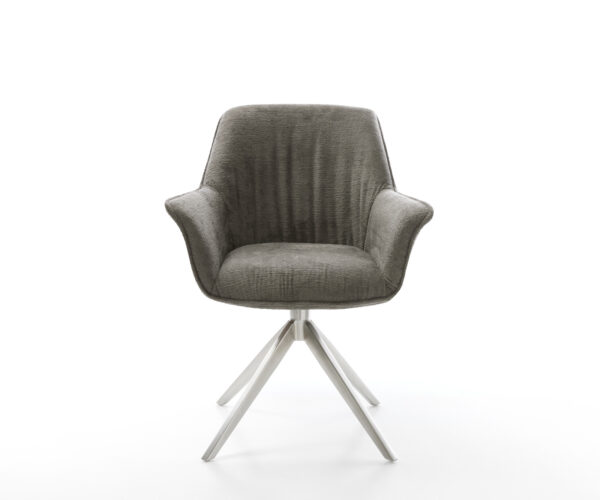 Jedálenská stolička Keila-Flex s opierkami bouclé mäkký tmavobéžová krížová podstava široká nerezová oceľ 360° otočný hojdacia funkcia